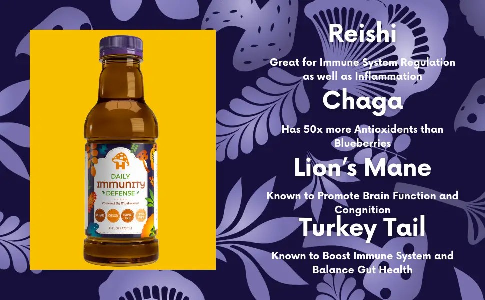 Massive dose of Reishi, Turkey Tail, Chaga, and Lion's Mane in every bottle.